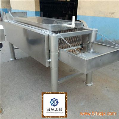 鴿子拔毛機(jī)只需要一人就能輕松的進(jìn)行操作的、而且適合不同品種的鴿子進(jìn)行使用的、同時拔毛機(jī)操作簡單、只需要將燙好的鴿子放入到該拔毛機(jī)內(nèi)即可、完成脫毛工作后會自動出來、在出口處設(shè)有接禽板、脫好的鴿子會掉落在接禽板上。羽毛則隨水沖出機(jī)內(nèi)。