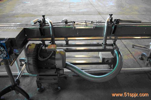 在輸送線上將實罐自動翻轉180度,倒去經過殺菌后存于實罐頂部上的水,并在四周用強風吹干,以去除罐表面的水珠,便于后道對罐體進行在線噴碼及包裝裝箱,使罐身清潔美觀。主要材料為不銹鋼,為配在輸送線上不單獨使用。